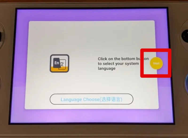中国語か英語の言語選択です。英語でよければそのまま「Next」をタップします。(日本語設定は後から可能です。)