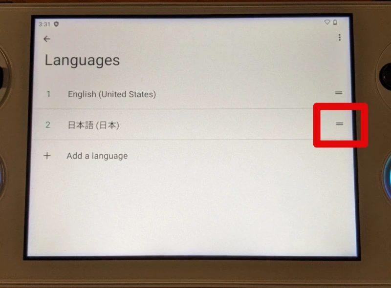 日本語(日本)の右にある「=」を上のEnglishと入れ換えます。